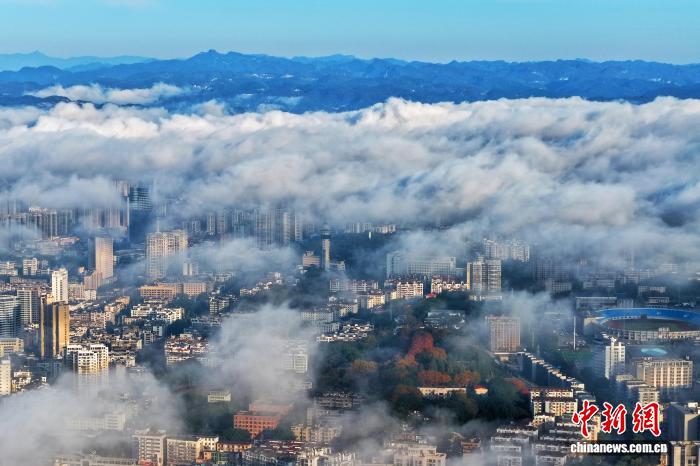 湖北宜昌:雾海“锁”青山 楼宇“浮”云端